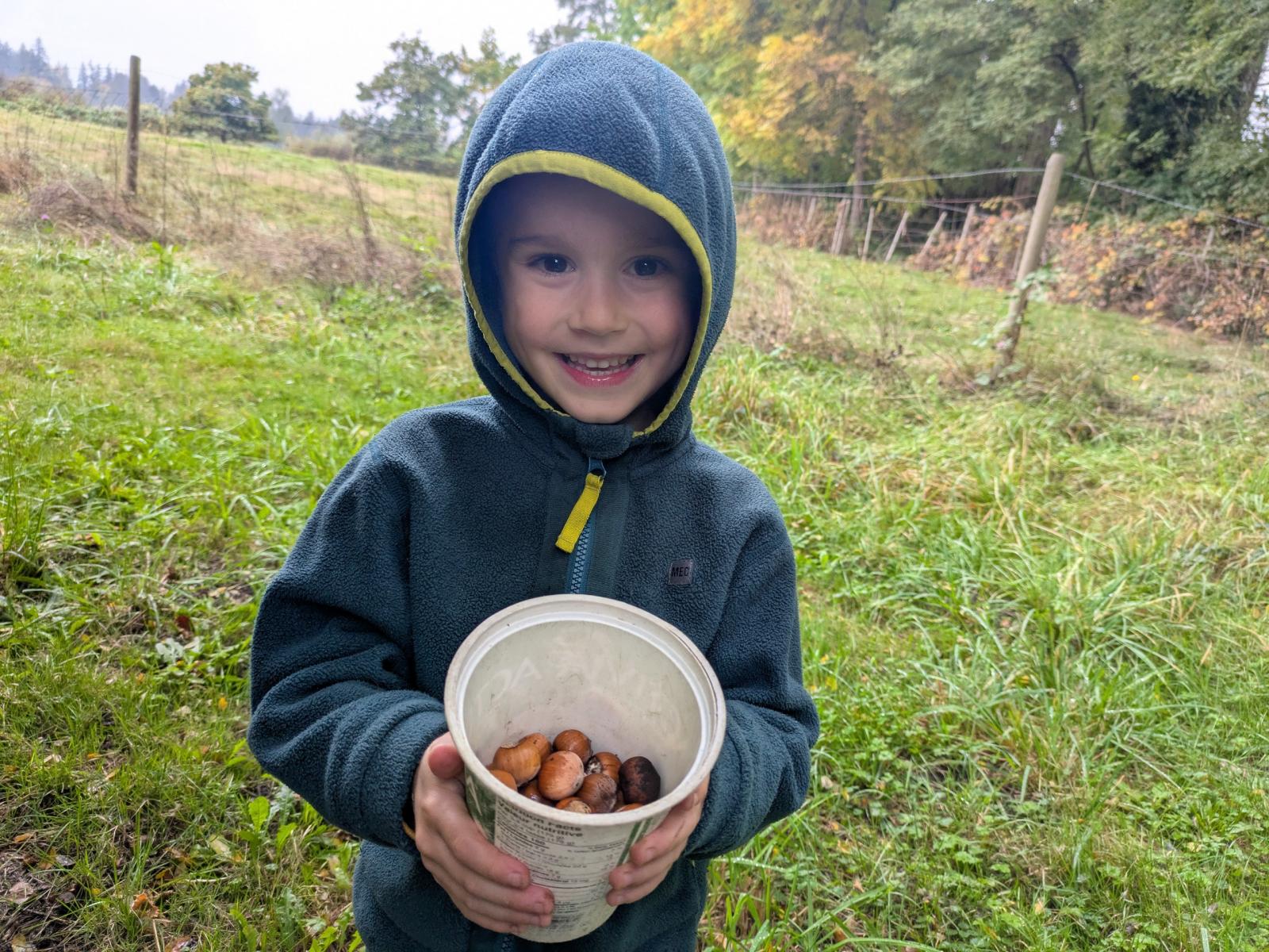 Hazelnut picking was a fun experience! The children picked a huge bag full. We’ll do some activities with them and send some home with each student this week.
